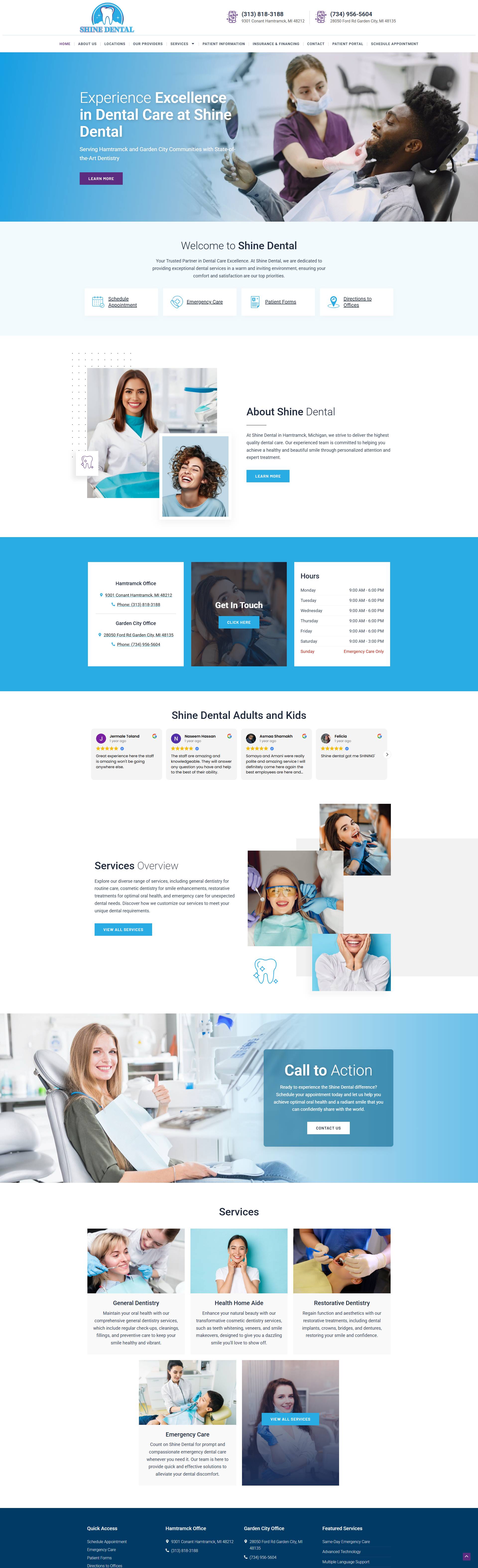 Shine Dental Clinics is a professional dental website designed to showcase clinic services, build patient trust, and facilitate appointment bookings. The site features a clean, modern interface with intuitive navigation and well-structured service pages, allowing patients to easily explore treatments and take next steps. Built with performance, responsiveness, and SEO readiness in mind, the website provides a scalable digital platform that enhances patient engagement, strengthens brand credibility, and supports long-term clinic growth.