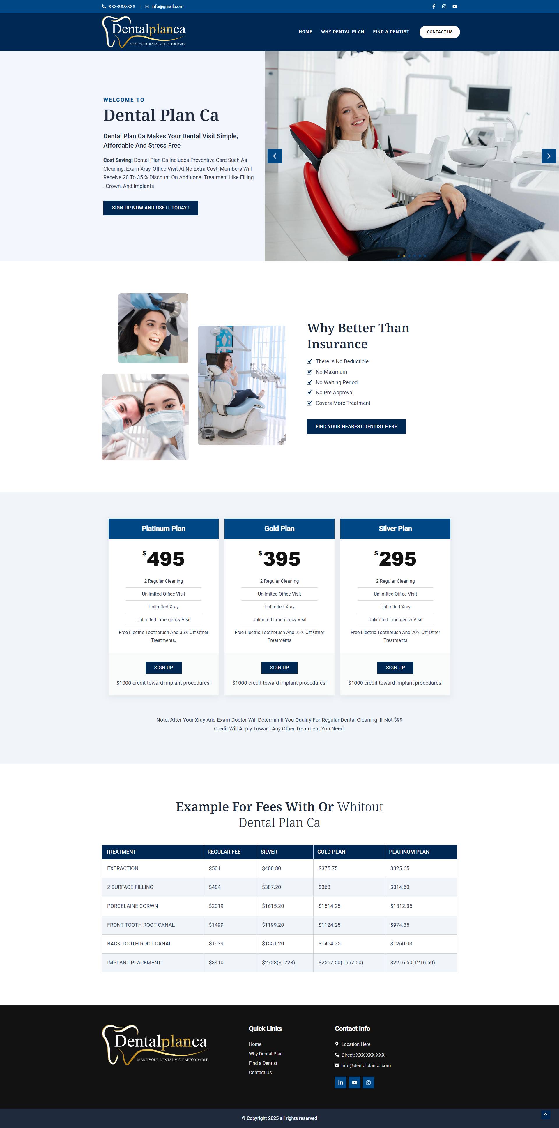 DentalPlan CA is a dental services website designed to present treatment plans clearly, build patient confidence, and encourage inquiries. The site features a clean, modern interface with structured service information and intuitive navigation, allowing users to easily understand available dental options. Built with performance, responsiveness, and SEO readiness in mind, the website provides a scalable digital platform that supports patient education, lead generation, and long-term brand credibility.