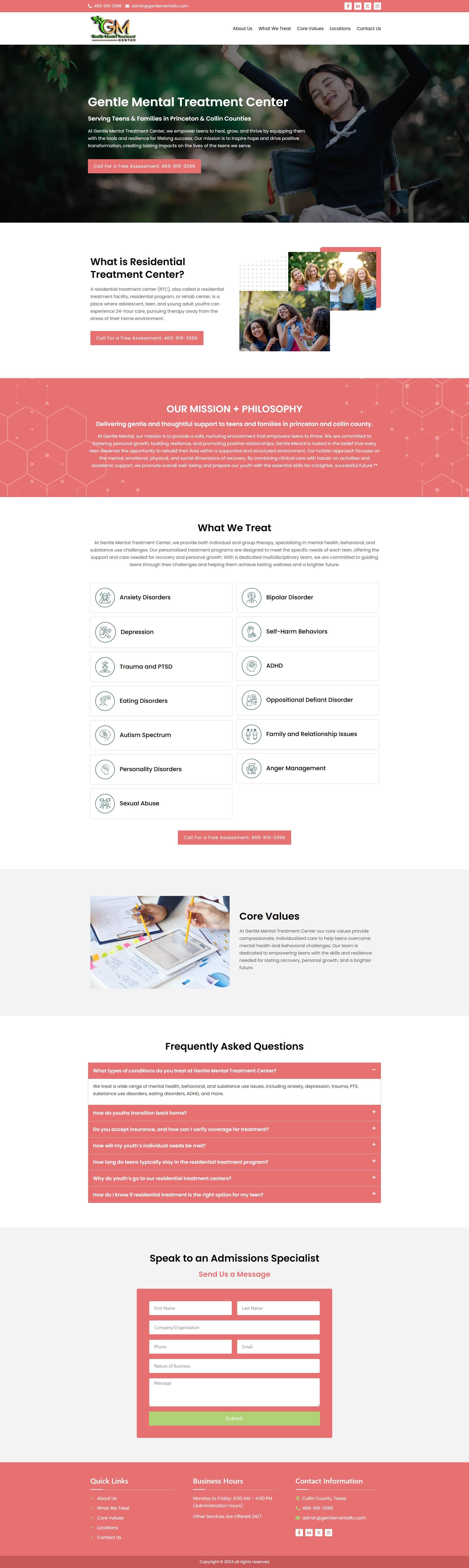 Gentle Mental LTC is a mental health website designed to create a professional, compassionate, and approachable digital presence. The site delivers a structured presentation of services, resources, and contact pathways, enabling prospective clients to quickly understand offerings and take next steps. Built with performance, responsiveness, and SEO readiness in mind, the website provides a scalable foundation for patient engagement and long-term practice growth.