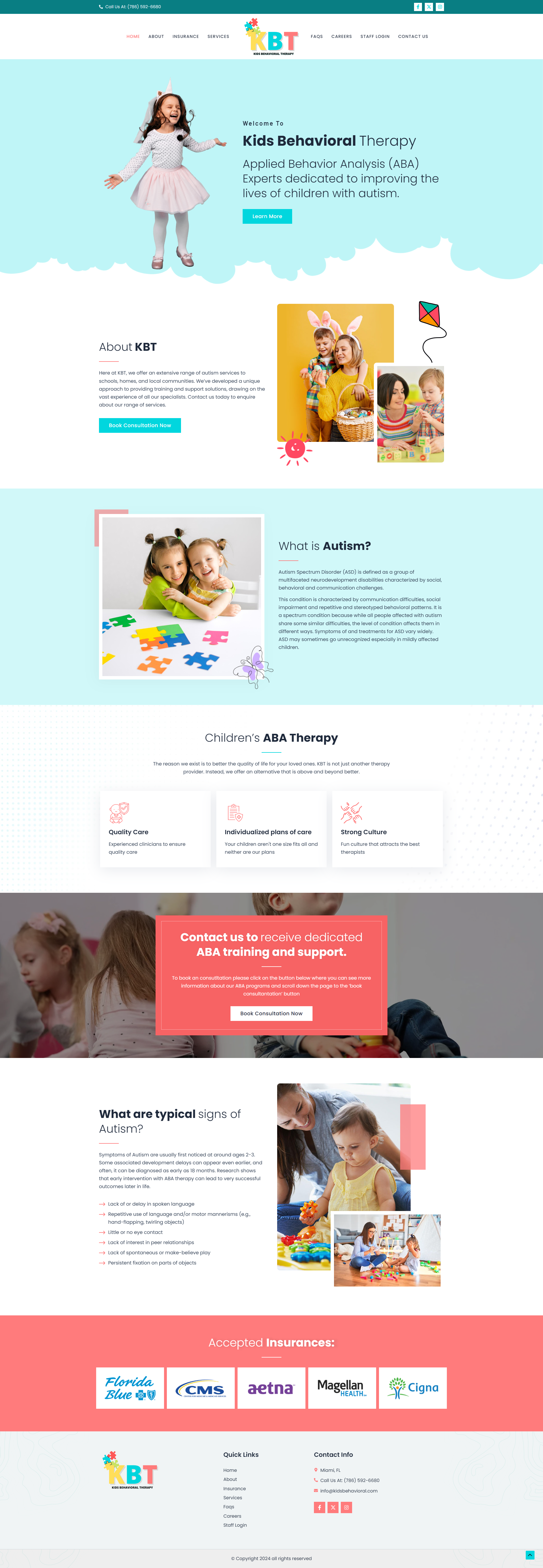 Kids Behavioral is a modern healthcare website designed to clearly communicate pediatric behavioral and mental health services to families seeking professional support. The site focuses on trust, clarity, and accessibility, presenting complex medical information in a parent-friendly format. Built with performance, responsiveness, and SEO readiness in mind, the website supports patient inquiries, improves service discoverability, and strengthens the clinic’s digital credibility.