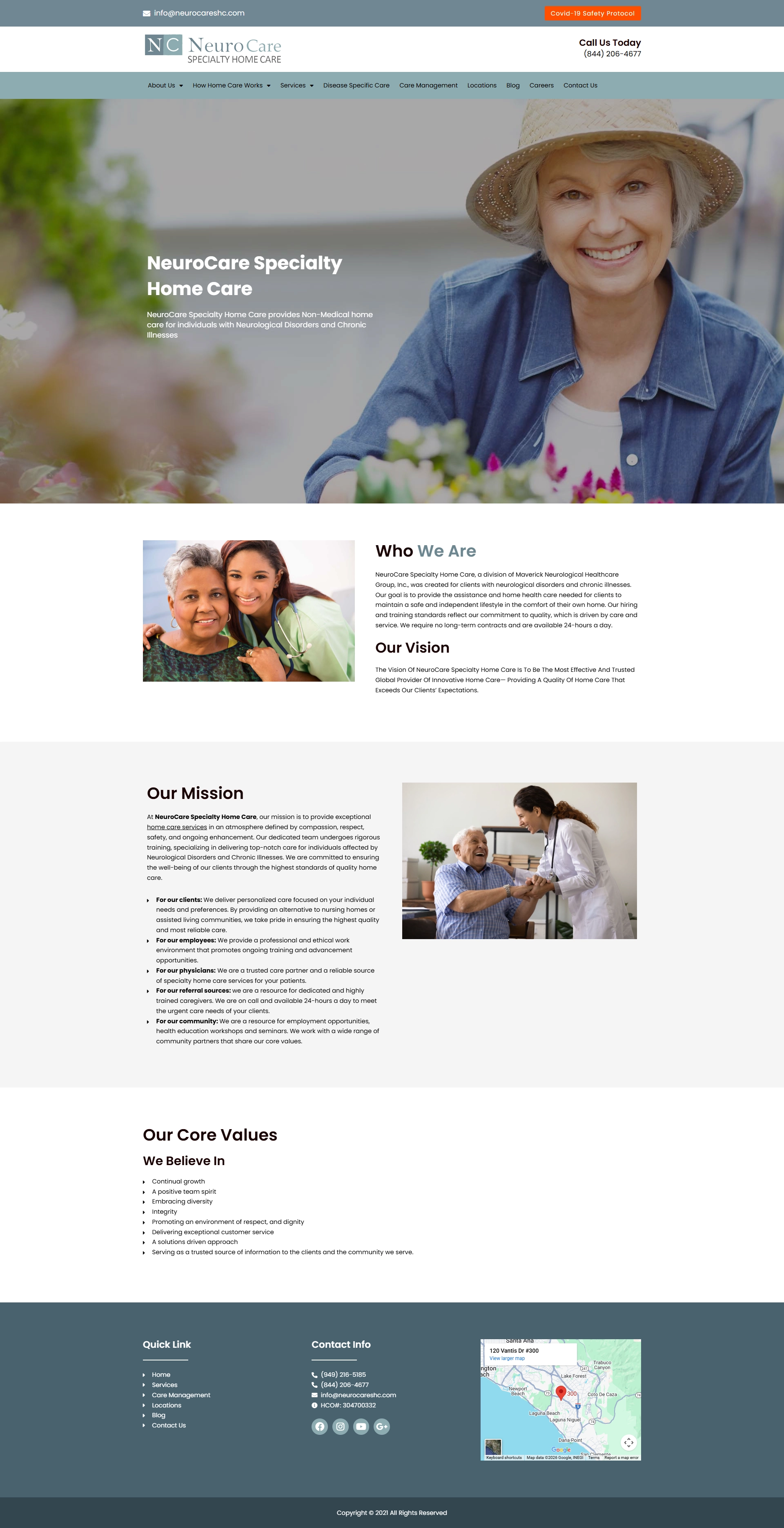 NeuroCare SHC is a professional home care website designed to provide clear information about medical and home healthcare services while building trust with prospective clients. The website features a modern, accessible layout, intuitive navigation, and optimized service pages to enhance user experience. Mobile-friendly, SEO-ready, and performance-optimized, the platform streamlines patient inquiries and supports lead generation, positioning NeuroCare SHC as a credible and reliable provider in the local healthcare market.