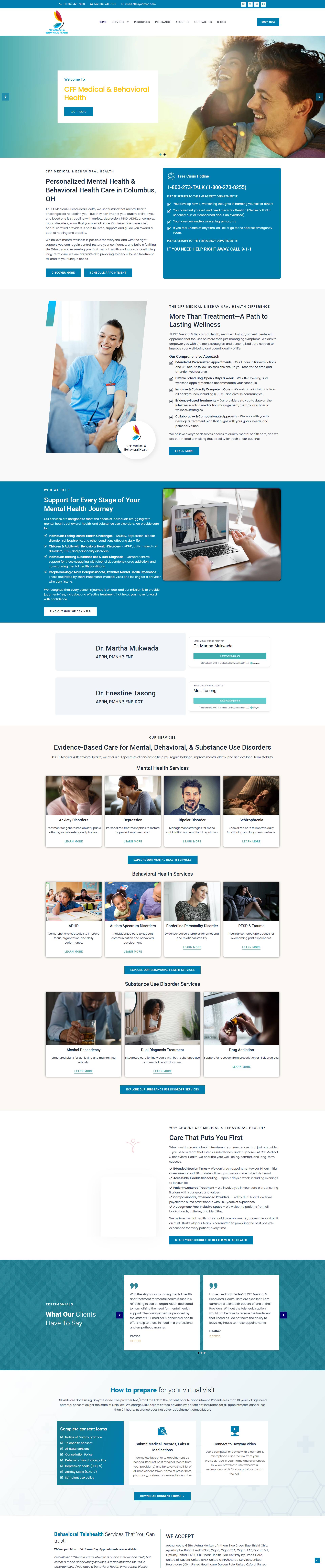 CFF PsychMed is a mental health website designed to establish trust, provide clear service information, and guide prospective patients toward care. The site combines a professional, approachable aesthetic with intuitive navigation, ensuring visitors can easily understand offerings and take next steps. Built for performance, responsiveness, and SEO readiness, the website delivers a scalable platform to support patient engagement and clinic growth.